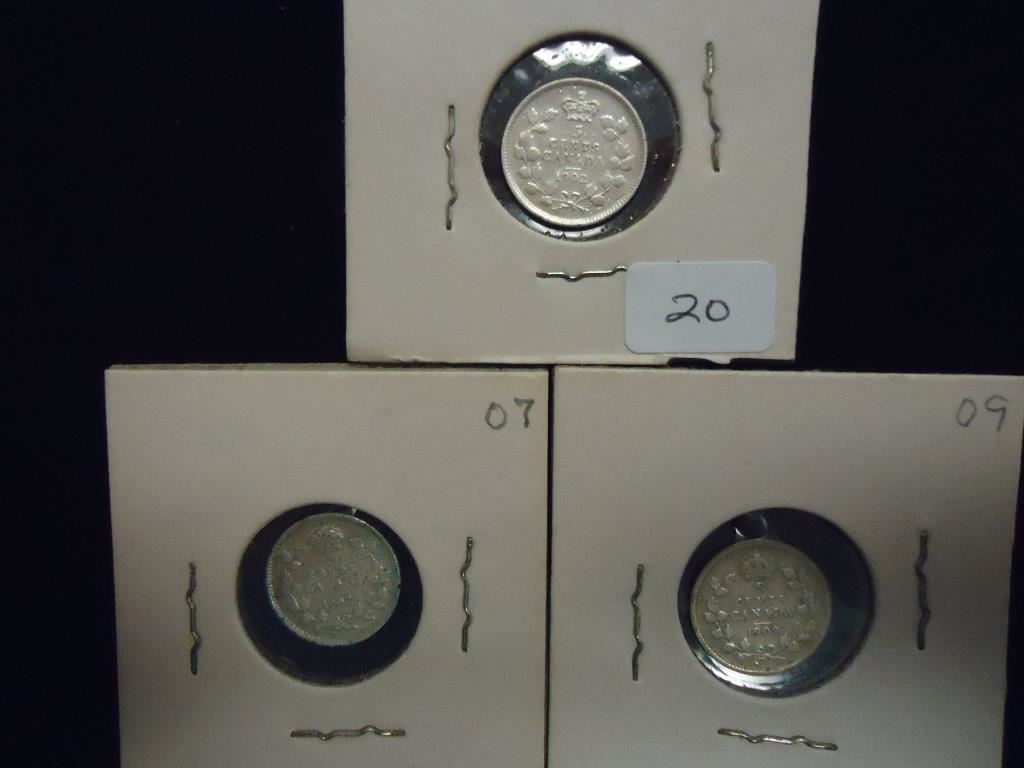 1902,07 & 1909 CANADA SILVER 5 CENTS