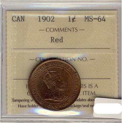1902 1¢ ICCS MS64RD. Lots of lustre.
