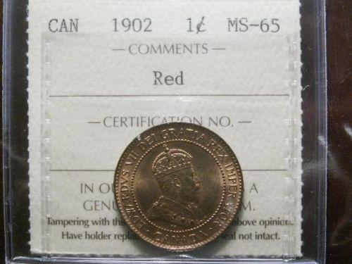 1902 1¢ ICCS MS65 Red, Fully struck with clean fields and superb surfaces.