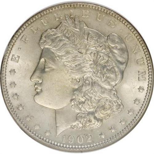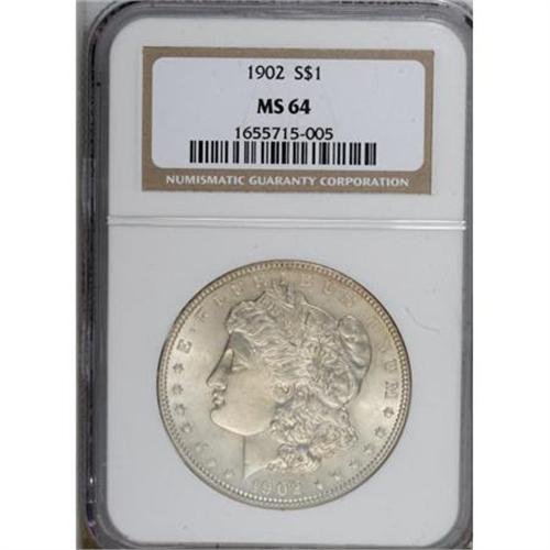 <B>1902 $1 MS64 NGC.</B></I> NGC Census: (1840/899). PCGS Population (1887/1491). Mintage: 7,994,777. Numismedia Wsl. Price for NGC/PCGS coin in MS64: $125. (#7278)<BR><BR><B>Coin Engraver:</B> George T. Morgan<BR><BR><b>Shipping:</b> Coins & Currency (<a target="_blank" href="http://www.heritageauctions.com/common/shipping.php">view shipping information</a>)