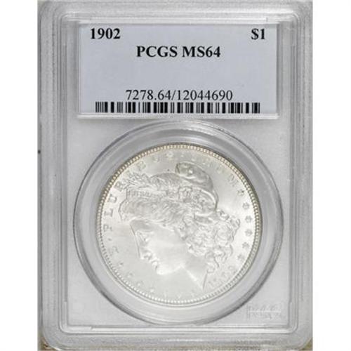<B>1902 $1 MS64 PCGS.</B></I> PCGS Population (1897/1503). NGC Census: (1856/899). Mintage: 7,994,777. Numismedia Wsl. Price for NGC/PCGS coin in MS64: $125. (#7278)<BR><BR><B>Coin Engraver:</B> George T. Morgan<BR><BR><b>Shipping:</b> Coins & Currency (<a target="_blank" href="http://www.heritageauctions.com/common/shipping.php">view shipping information</a>)