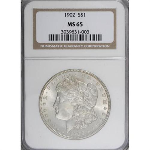 <B>1902 $1 MS65 NGC.</B></I> NGC Census: (751/148). PCGS Population (1133/369). Mintage: 7,994,777. Numismedia Wsl. Price for NGC/PCGS coin in MS65: $360. (#7278)<BR><BR><B>Coin Engraver:</B> George T. Morgan<BR><BR><b>Shipping:</b> Coins & Currency (<a target="_blank" href="http://www.heritageauctions.com/common/shipping.php">view shipping information</a>)