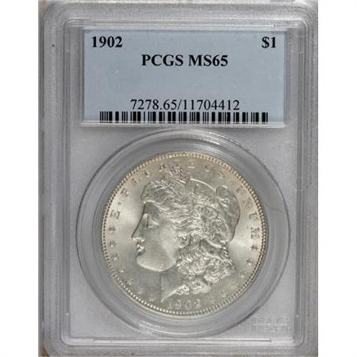 <B>1902 $1 MS65 PCGS.</B></I> PCGS Population (1117/361). NGC Census: (750/149). Mintage: 7,994,777. Numismedia Wsl. Price for NGC/PCGS coin in MS65: $360. (#7278)<BR><BR><B>Coin Engraver:</B> George T. Morgan<BR><BR><b>Shipping:</b> Coins & Currency (<a target="_blank" href="http://www.heritageauctions.com/common/shipping.php">view shipping information</a>)
