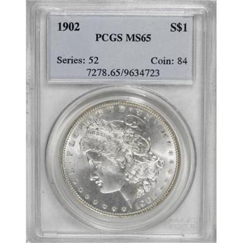 <B>1902 $1 MS65 PCGS.</B></I> PCGS Population (1117/361). NGC Census: (750/149). Mintage: 7,994,777. Numismedia Wsl. Price for NGC/PCGS coin in MS65: $360. (#7278)<BR><BR><B>Coin Engraver:</B> George T. Morgan<BR><BR><b>Shipping:</b> Coins & Currency (<a target="_blank" href="http://www.heritageauctions.com/common/shipping.php">view shipping information</a>)