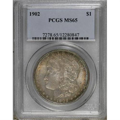<B>1902 $1 MS65 PCGS.</B></I> . PCGS Population (1146/374). NGC Census: (758/151). Mintage: 7,994,777. Numismedia Wsl. Price for NGC/PCGS coin in MS65: $345. (#7278)<BR><BR><B>Coin Engraver:</B> George T. Morgan<BR><BR><b>Shipping:</b> Coins & Currency (<a target="_blank" href="http://www.heritageauctions.com/common/shipping.php">view shipping information</a>)
