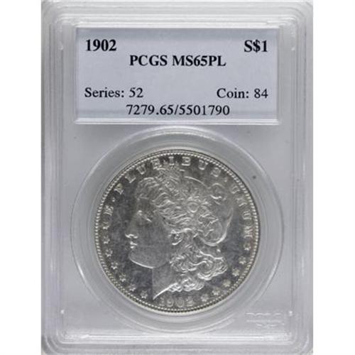 <B>1902 $1 MS65 Prooflike PCGS.</B></I> Well impressed devices, and bright, virtually untoned surfaces are seen on both sides of this lovely, Prooflike Gem. Nearly pristine. Population: 15 in 65 Prooflike, 6 finer (6/07). <BR><I>From the Diamond Head Collection.</B></I><BR><BR><B>Coin Engraver:</B> George T. Morgan<BR><BR><b>Shipping:</b> Coins & Currency (<a target="_blank" href="http://www.heritageauctions.com/common/shipping.php">view shipping information</a>\)