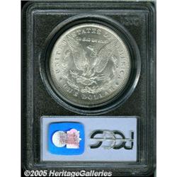 <B>1902<img border='0' src='http://www.heritagecoins.com/images/star.gif' width=10 height=10>$1 MS66 PCGS.</B></I> Radiant luster is emitted from smooth, clean surfaces that are essentially tone free. A lengthy vertical crack is noted on the obverse side of the slab, which of course does not detract from the eye appeal of the coin itself.