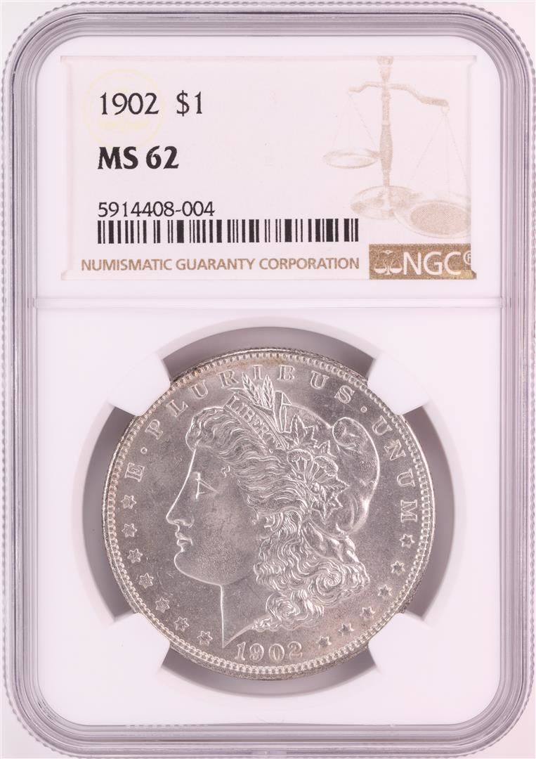 One 1902 $1 Morgan Silver Dollar Coin NGC MS62. NGC Certified.