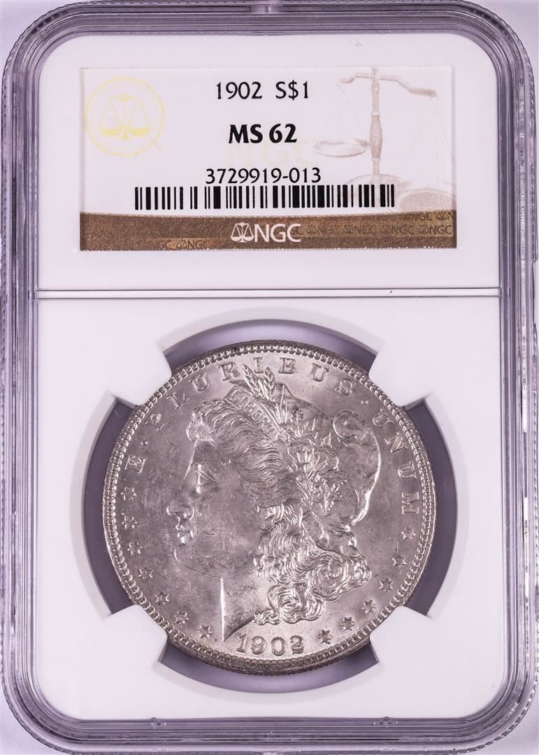 One 1902 $1 Morgan Silver Dollar Coin NGC MS62. NGC Certified.