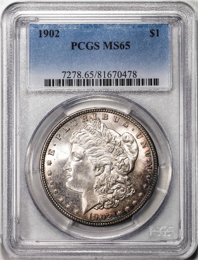 One 1902 $1 Morgan Silver Dollar Coin PCGS MS65 Nice Toning. PCGS Graded.
