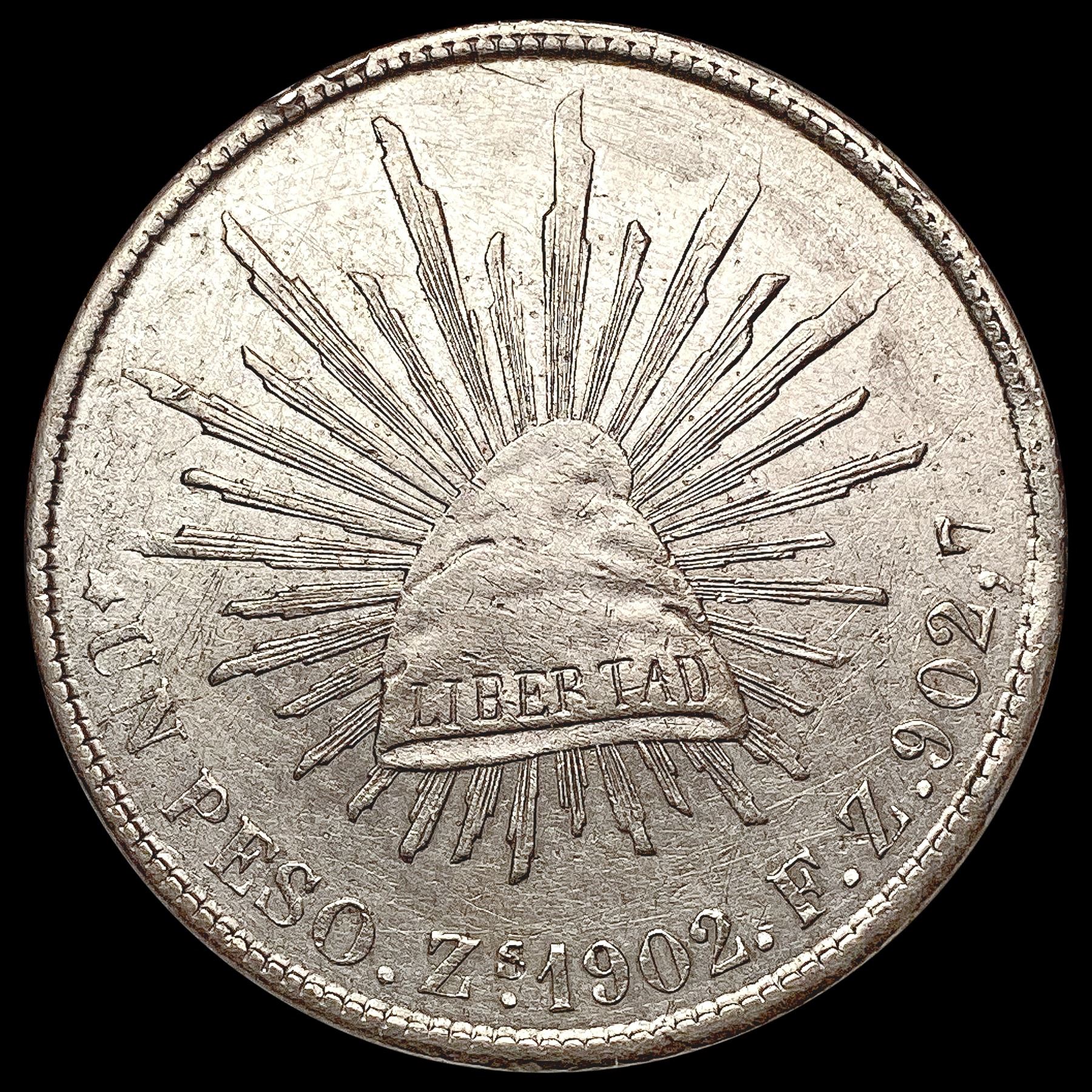 1902 1 Peso Zs FZ Large Eagle Sun OLD Silver Coin CLOSELY UNCIRCULATED