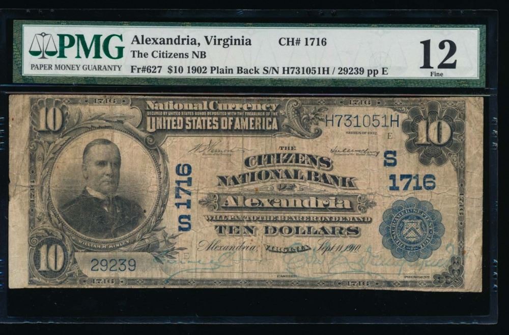 One 1902 $10 Alexandria National Bank Note PMG 12.