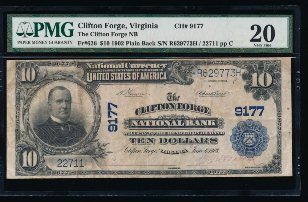 One 1902 $10 Clifton National Bank Note PMG 20.