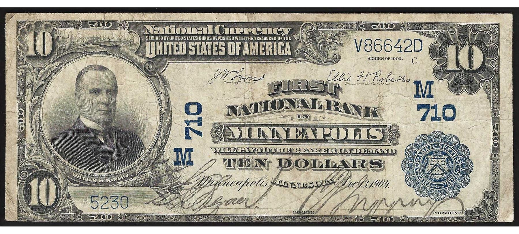 1902 $10 First National Bank in Minneapolis Currency Note CH# 710