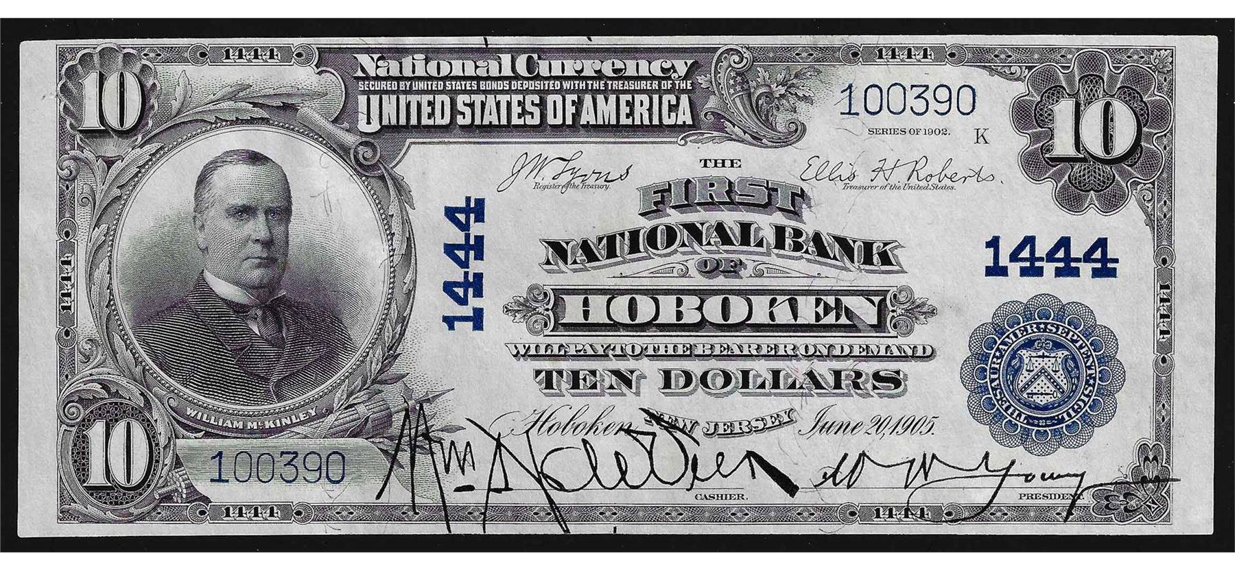 1902 $10 First National Bank of Hoboken, NJ National Currency Note