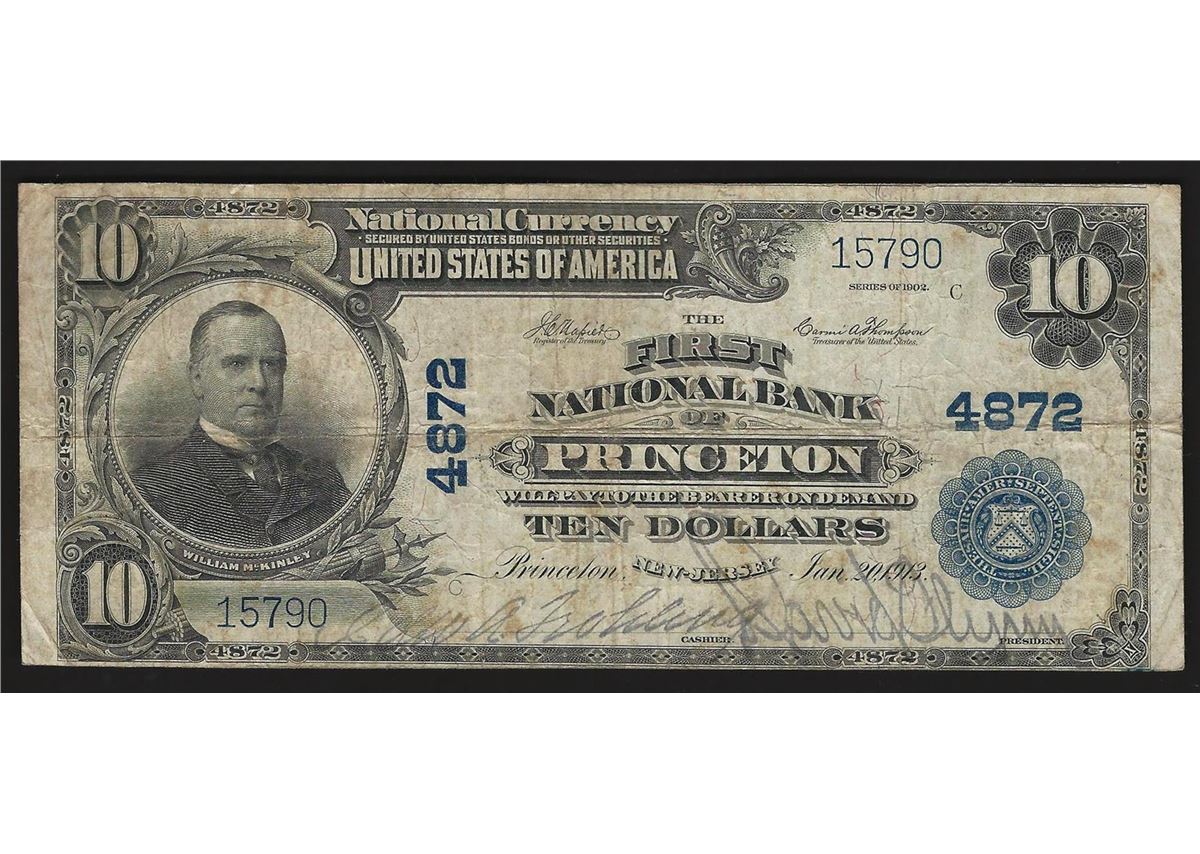 One 1902 $10 First National Bank of Princeton New Jersey Bank Note.