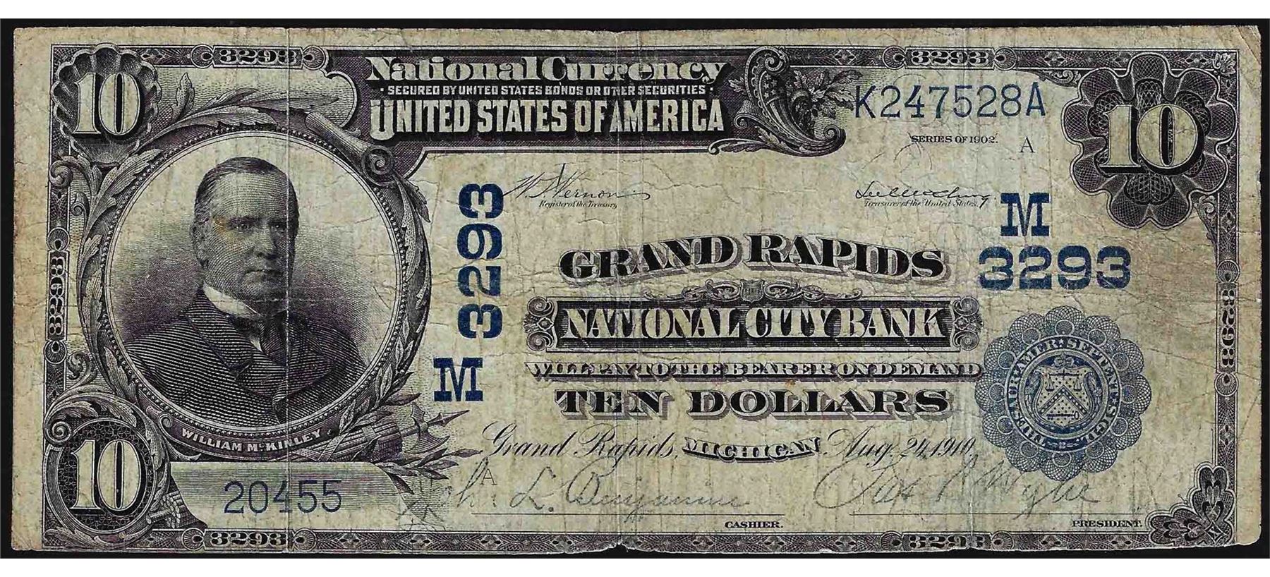 One 1902 $10 Grand Rapids National City Bank National Currency Note CH#3293.