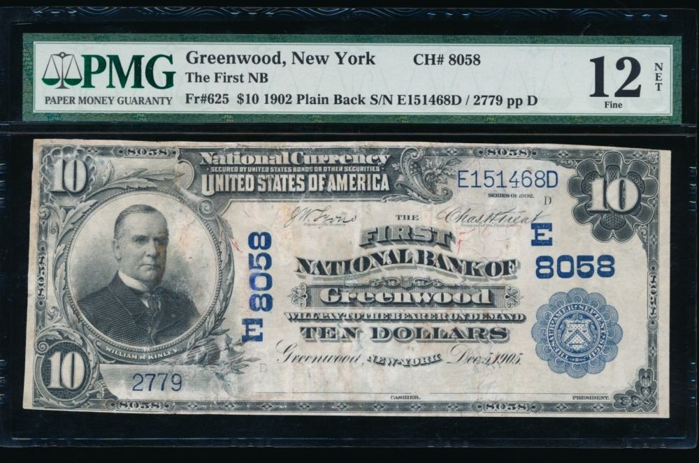 One 1902 $10 Greenwood NY National PMG 12NET.