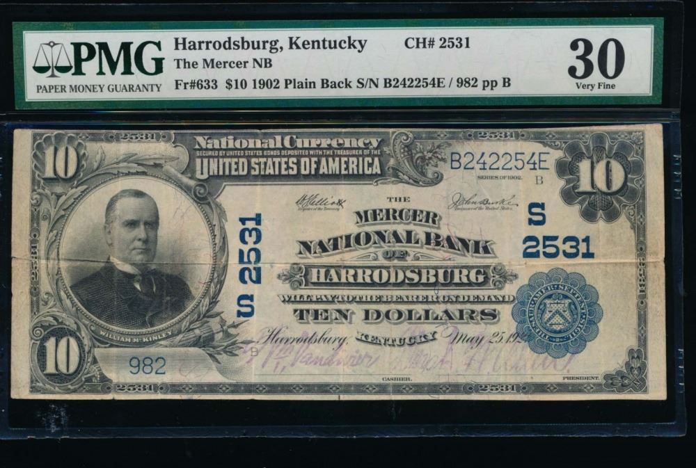 One 1902 $10 Harrodsburg National Bank Note PMG 30.