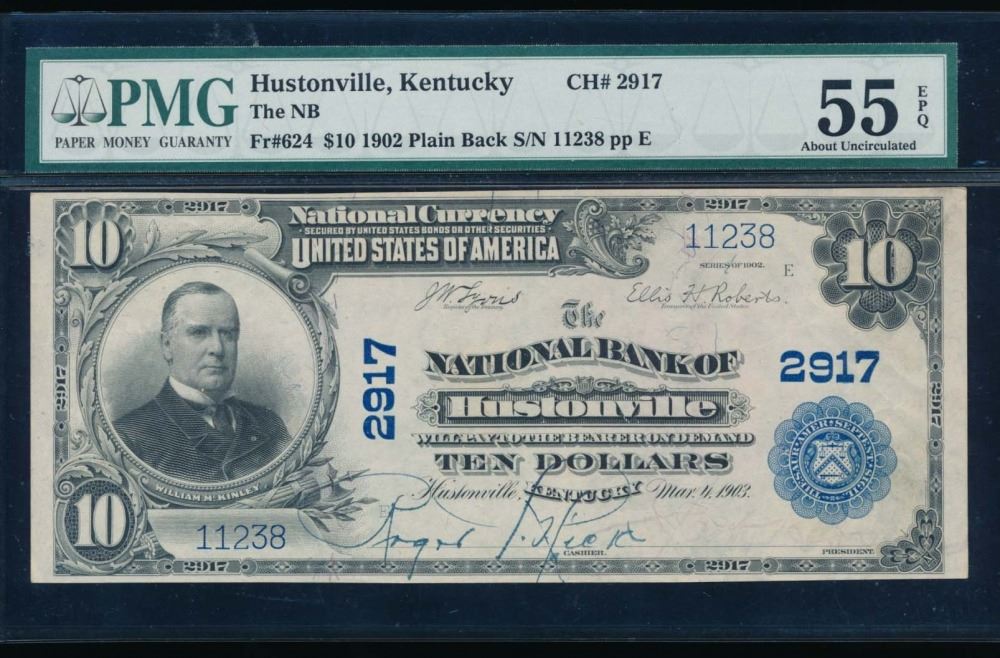 One 1902 $10 Hustonville National Bank Note PMG 55EPQ.