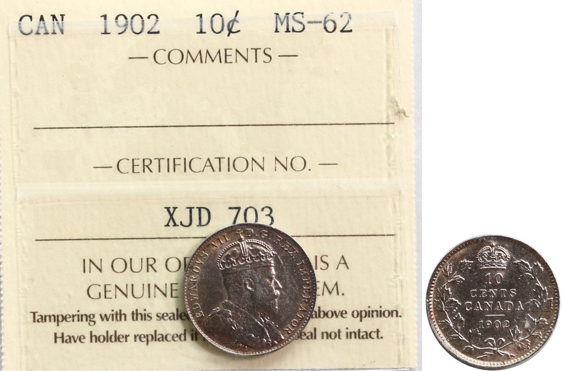 The cataloguer has taken every reasonable measure to ensure that all of the lots in this sale are as described and genuine. All raw coins and banknotes have been graded by the cataloger or the auction house which represent our best professional opinion. To grade coins and banknotes, we use Canadian grading standards, 42 years of experience and good conscience. However, grading is a subjective description in the opinion of the cataloger or the auction house. Among experts there are often differences of opinion on the grading and the eye appeal of a coin. The strike and the state of preservation are often debated. The Canadian Numismatic Company acts as an agent between consignors and buyers. The Canadian Numismatic Company does not guarantee that any coin or banknote cataloged will meet the standards, or the grade, of any third party grading companies. No warranty, whether impressed or implied. Items are as is, no warranty given. We cannot accept responsibility and waive all liability resulting in financial losses, and or incidentals accruing from the sale of any items, nor can we guarantee that items graded by third party services will grade the same if submitted to a different grading service or re-submitted to the same company. Statements by The Canadian Numismatic Company regarding the condition, the eye appeal, the strike and the population of items are for guidance only. All lots offered are sold "AS IS". Title to all lots remains with the auction house until paid for in full by the purchaser. But they are held at the risk of the purchaser once the time of the sale.