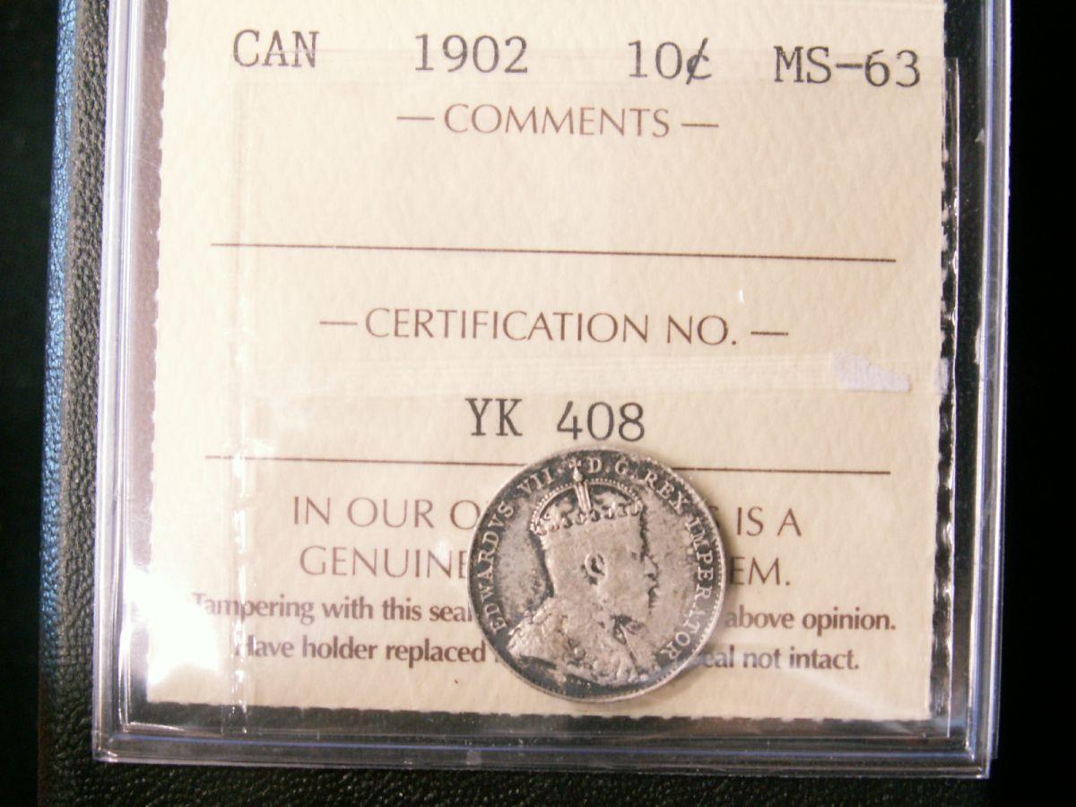 1902 10¢ ICCS MS63. Nice underlying lustre.