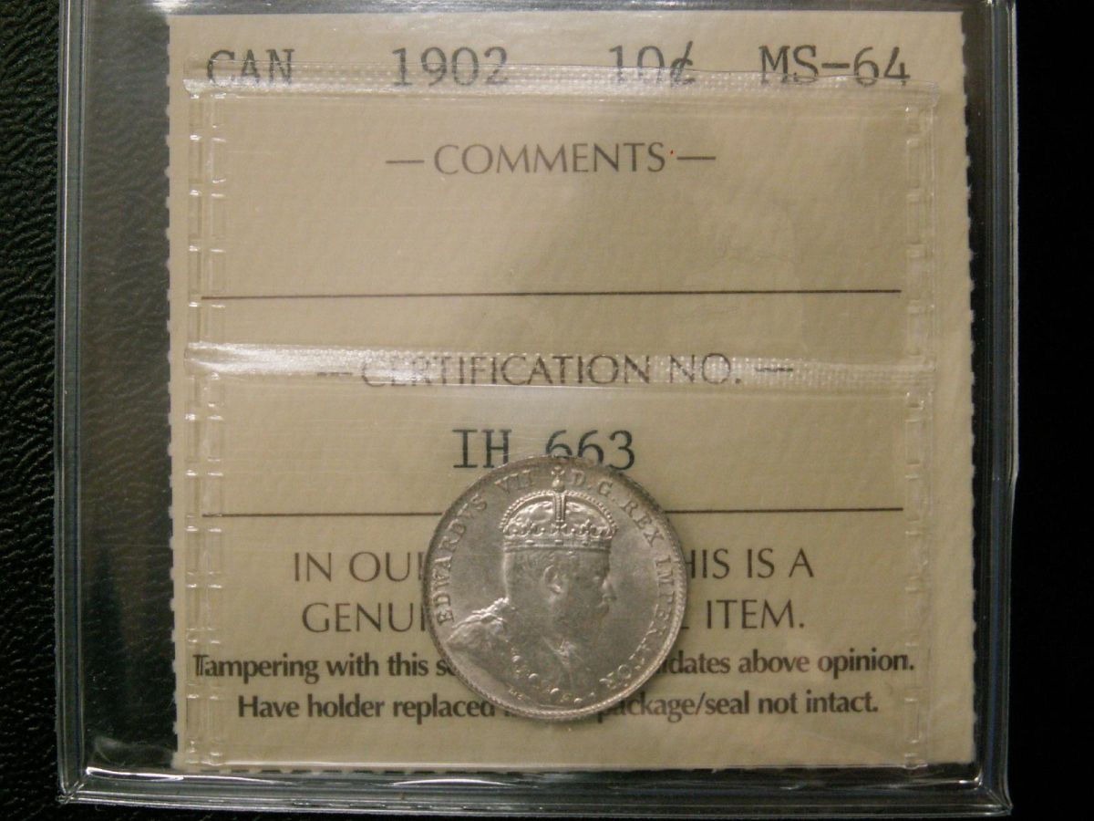 1902 10¢ ICCS MS64 PQ+.Brilliant with full luster. Excellent strike with clean fields and lovely surfaces. Only 2 finer