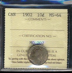 1902 10¢ ICCS MS64, attractively toned. Very nice example.