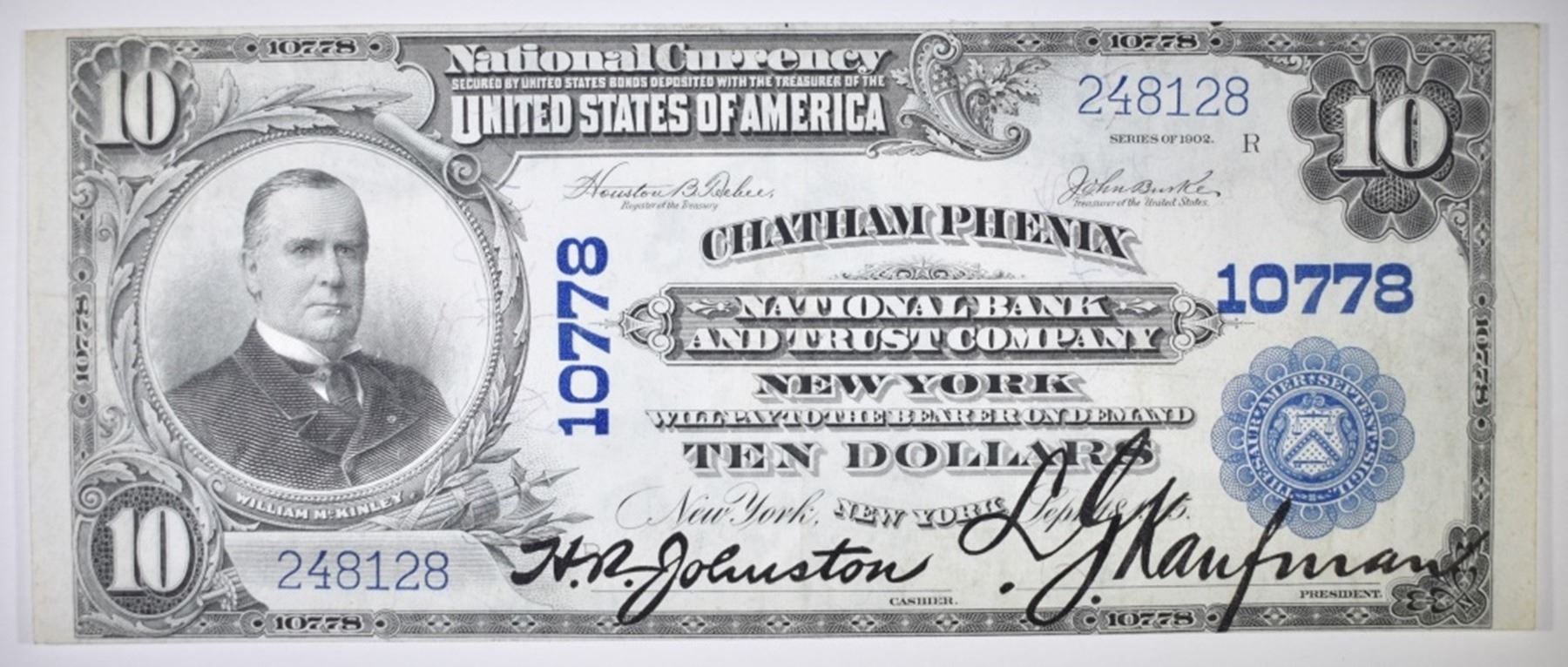 CHATHAM-PHENIX NB & TC N.Y. STRONG SIGNATURES. GOOD EYE APPEAL. ESTIMATE $430 - $480.