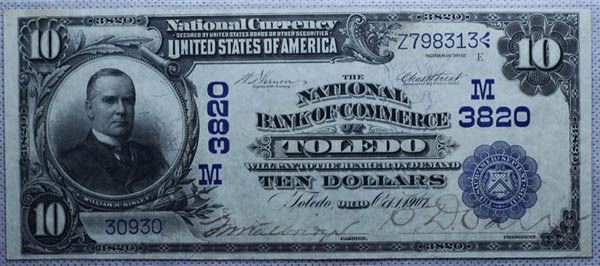 1902, $10 National Bank Note, Date Back, Toledo, Oh, The National Bank of Commerce