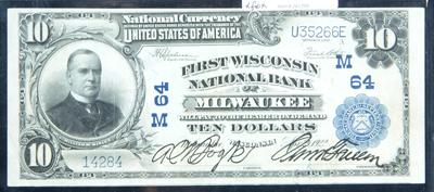 1902, $10 National Bank Note. First Wisconsin NB, Milwa