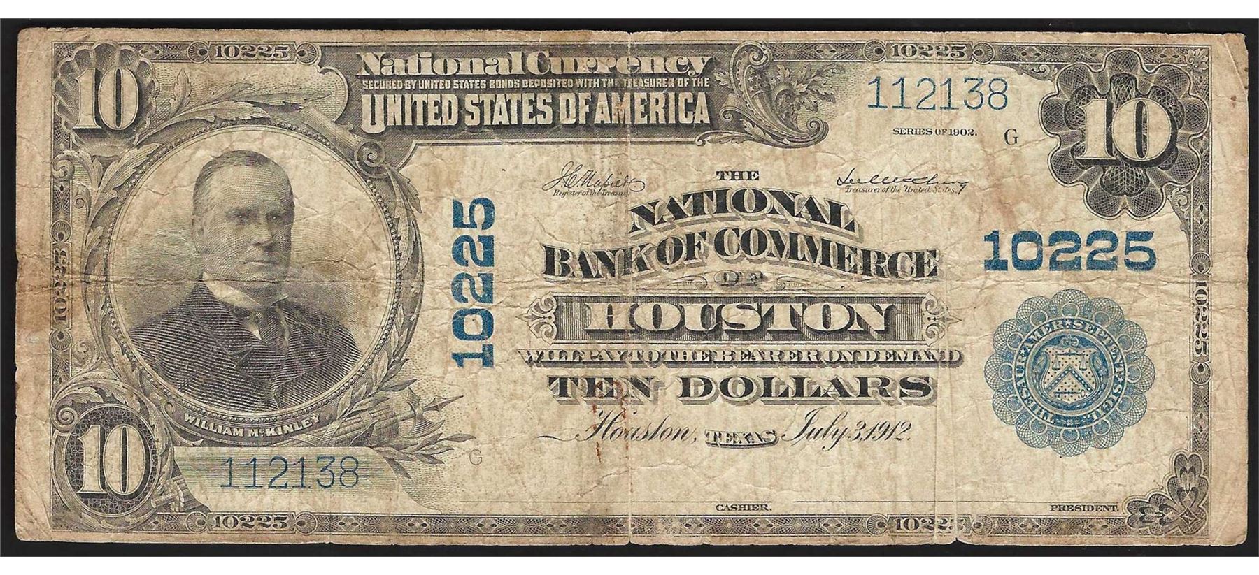 One 1902 $10 National Bank of Commerce of Houston National Currency Note CH# 10225.