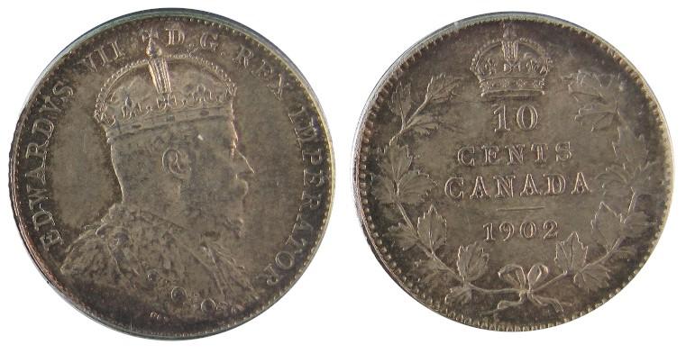 1902 10¢ PCGS MS64. Underlying lustre and green shades.