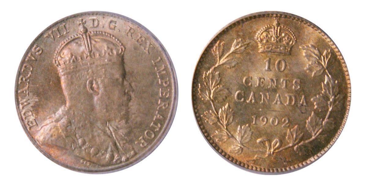 1902 10¢ PCGS MS64, nicely toned. A scarce date.