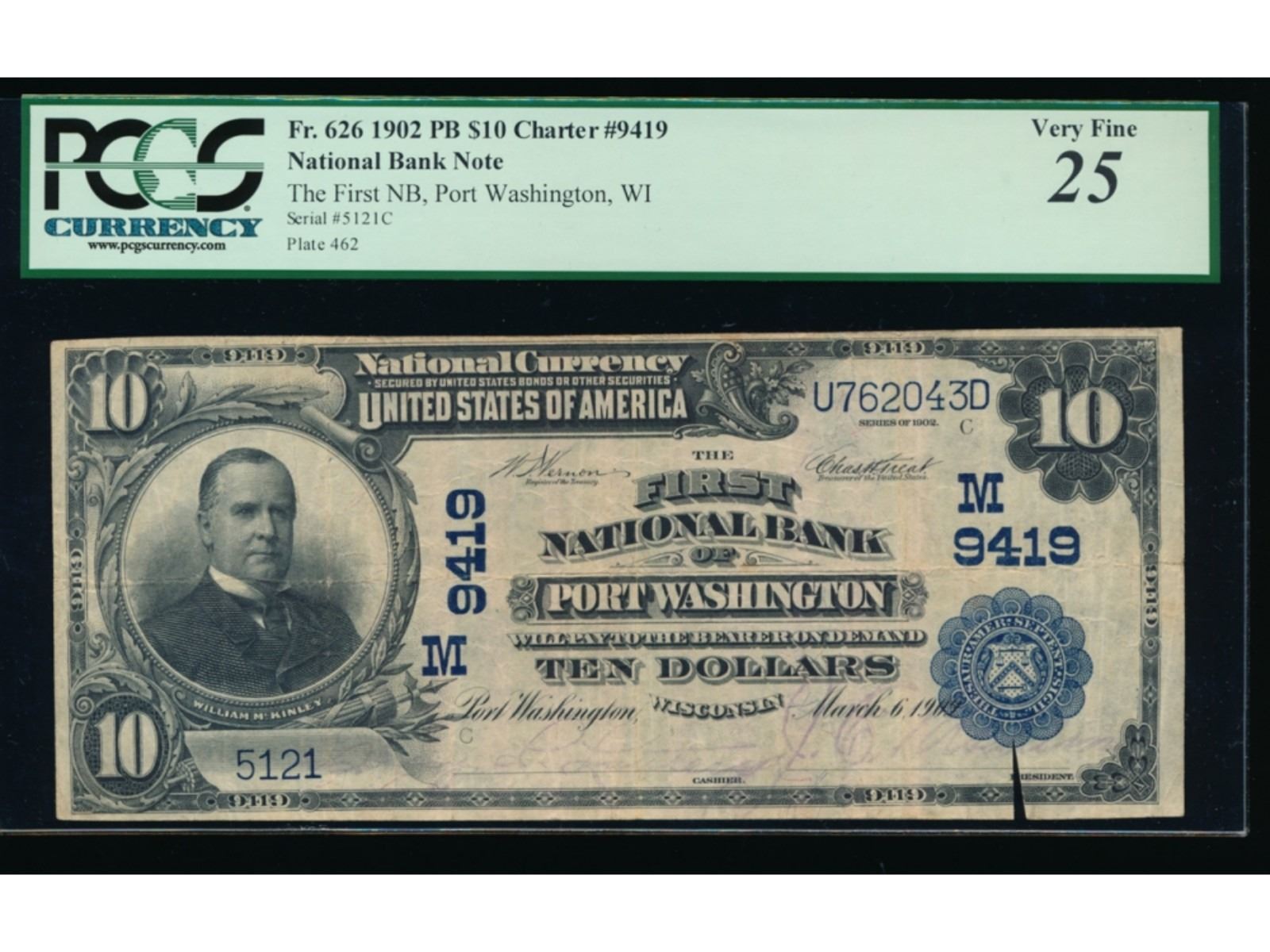 One 1902 $10 Port Washington National Bank Note PCGS 25.