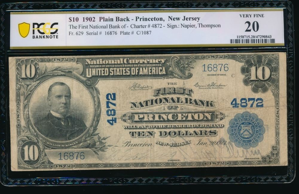 One 1902 $10 Princeton NJ National PCGS 20.