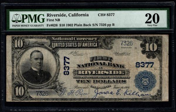 One 1902 $10 Riverside National Bank Note PMG 20.