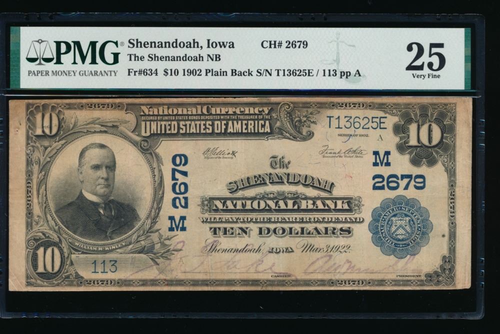 One 1902 $10 Shenandoah National Bank Note PMG 25.