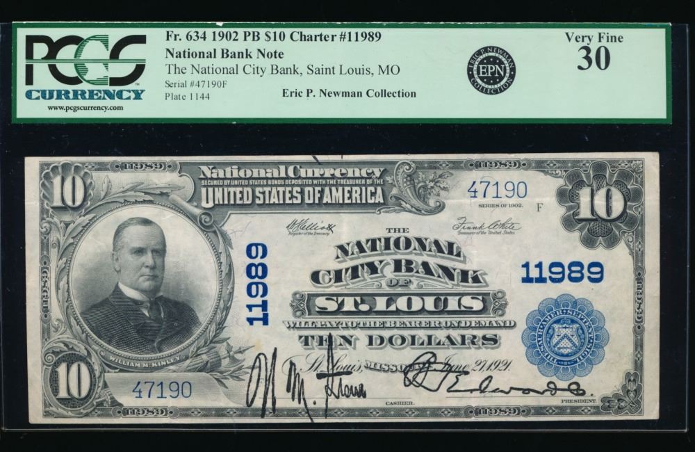 One 1902 $10 St Louis MO National Note PCGS 30.