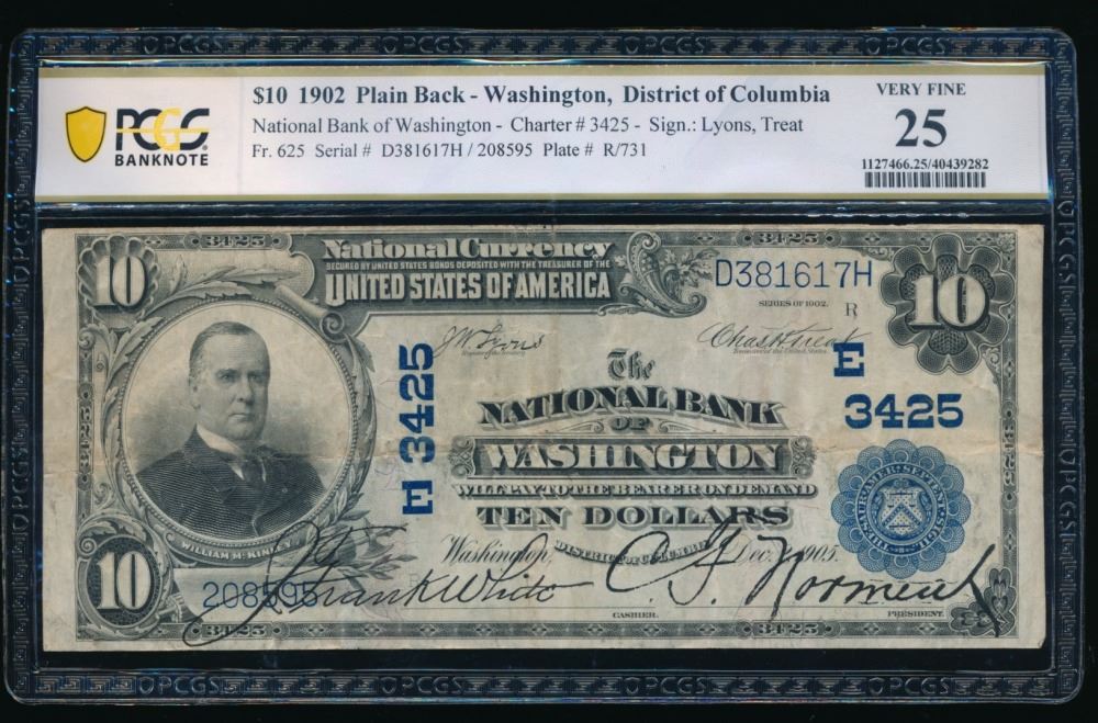 One 1902 $10 Washington DC National Bank Note PCGS 25.