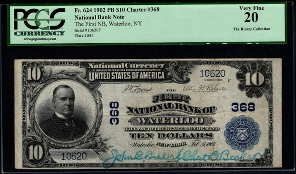 One 1902 $10 Waterloo NY National Bank Note PCGS 20.