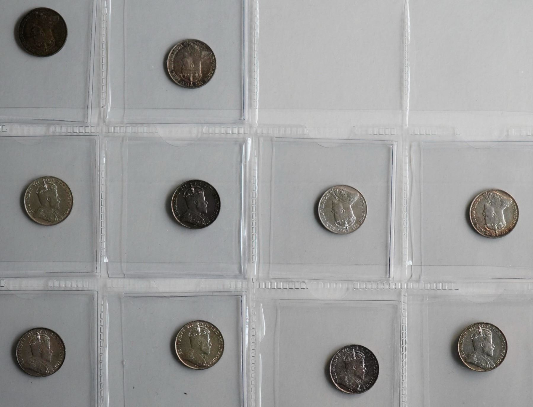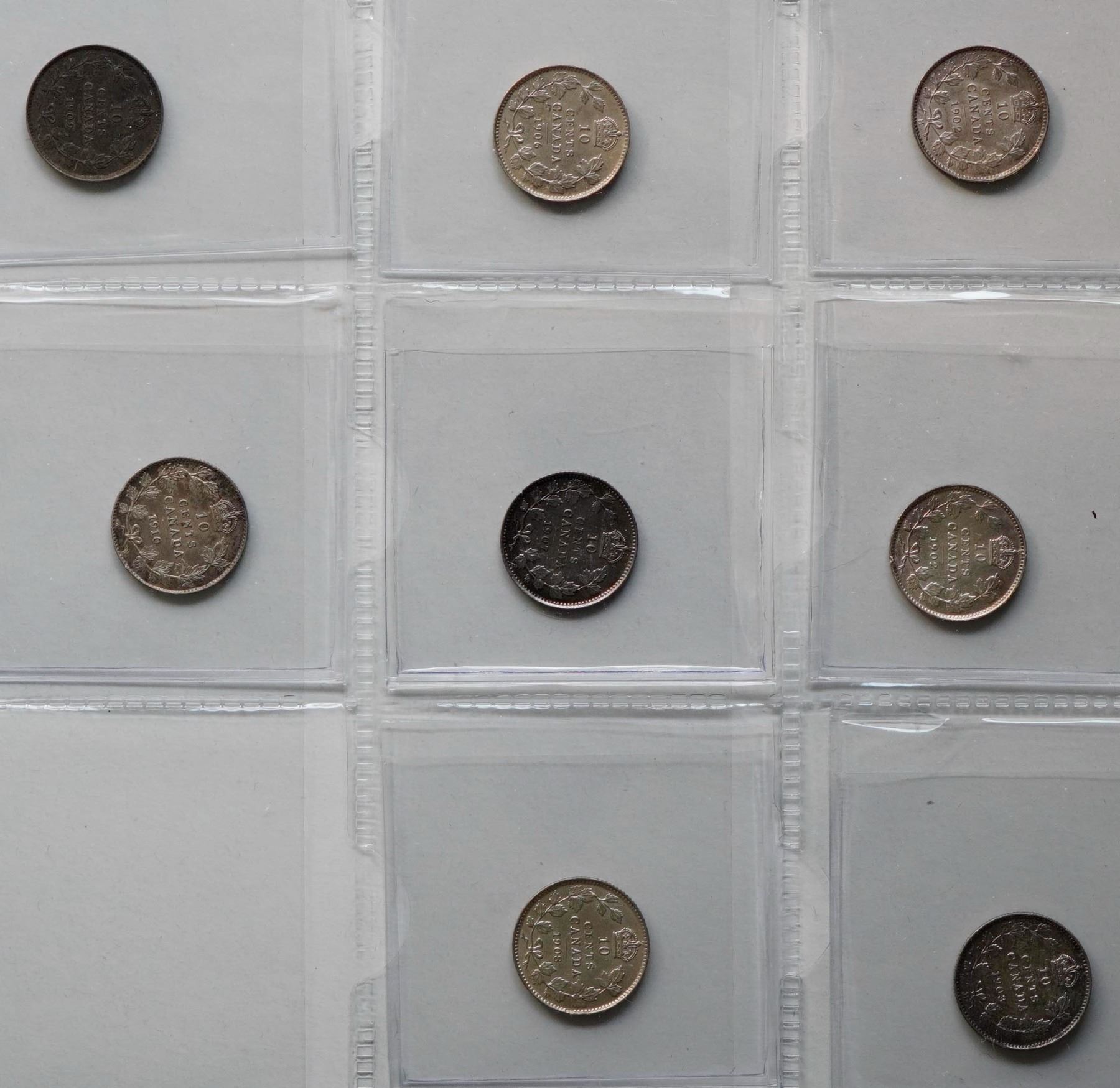 1902 10¢ to 1910. An almost complete set of Georges VII pcs EF and better on average w/some exceptions. Lot of 10 pcs.
