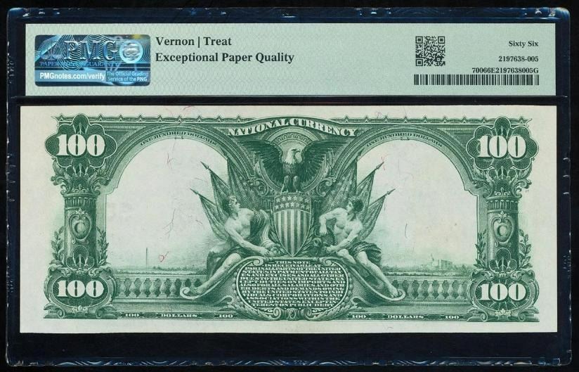 One 1902 $100 Aurora IL National PMG 66EPQ.