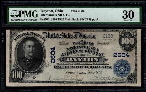 One 1902 $100 Dayton National Bank Note PMG 30.