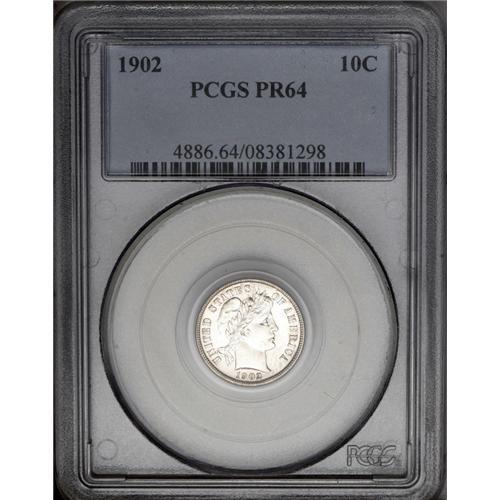 1902 10C PR64 PCGS. Proof Barber dimes appear to be on 1902[10C] PR64 PCGS.
