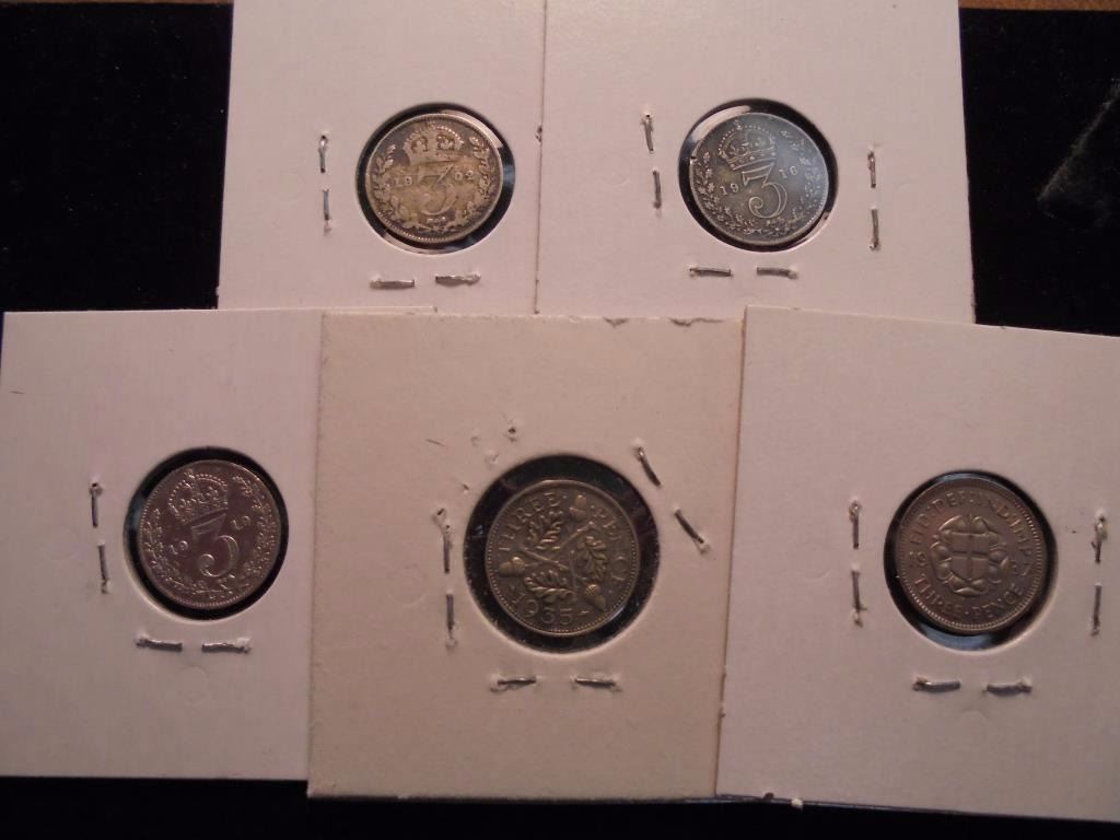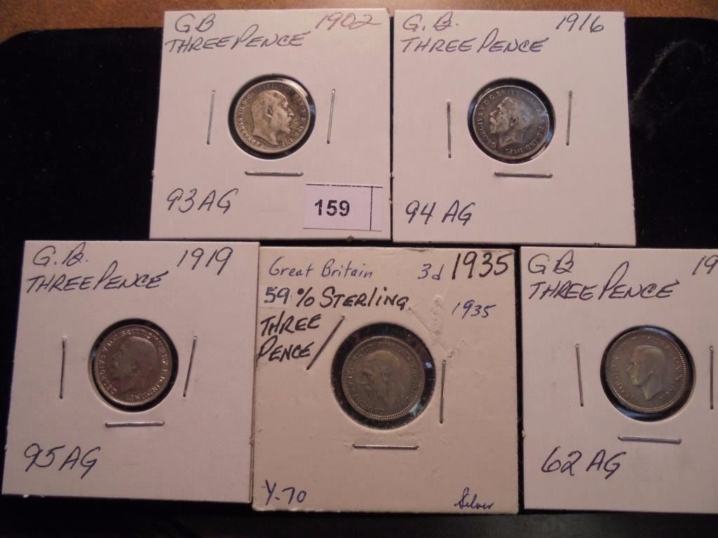 1902,16,19,35 & 37 GREAT BRITAIN SILVER 3 PENCE