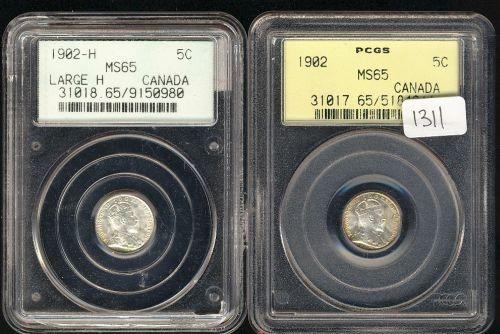 1902, 1902 Large H both coins are PCGS MS-65