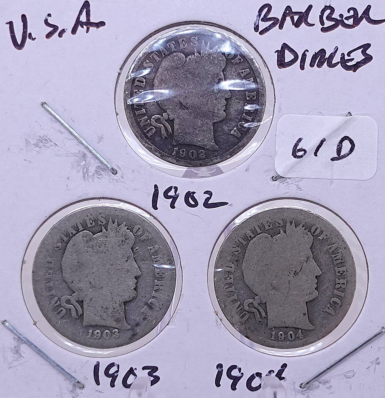 1902, 1903, 1904 Barber Dime