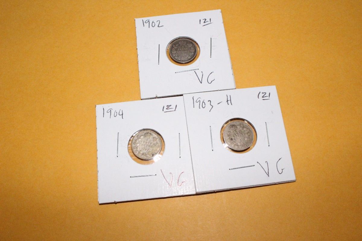 1902; 1903H; 1904 Cdn. Small Five Cent Coins