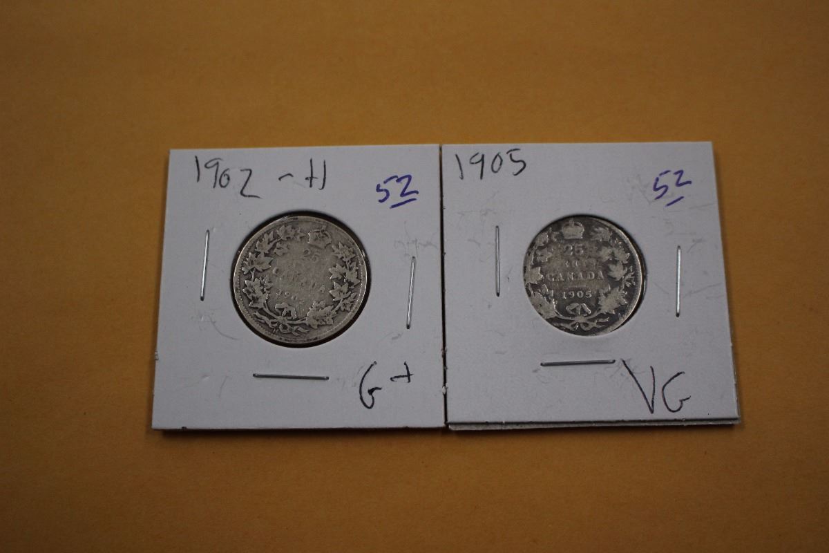 1902; 1905 Cdn. Twenty-five Cent Coins